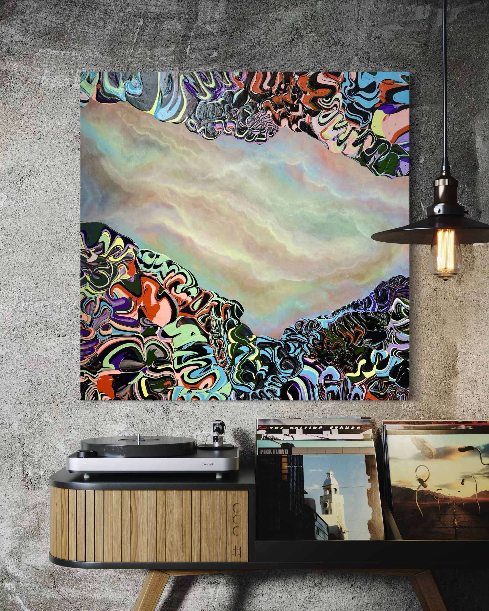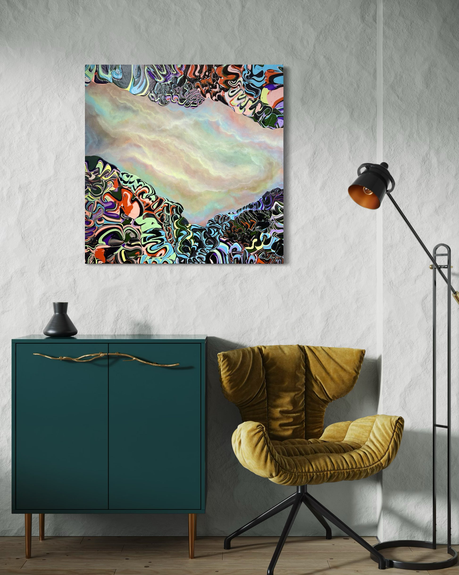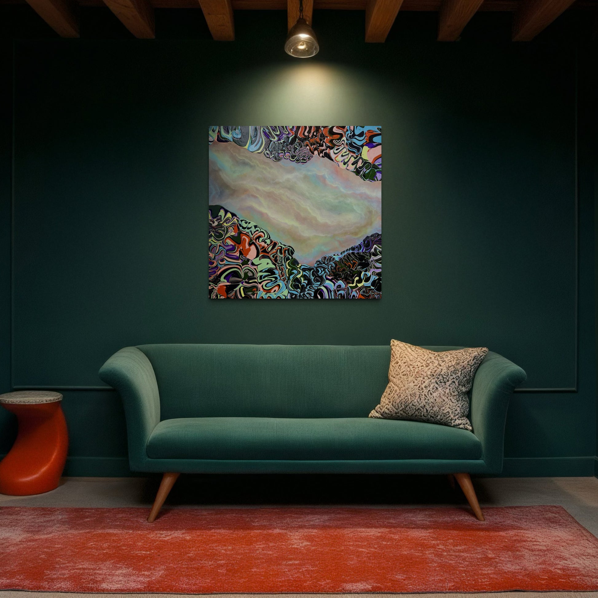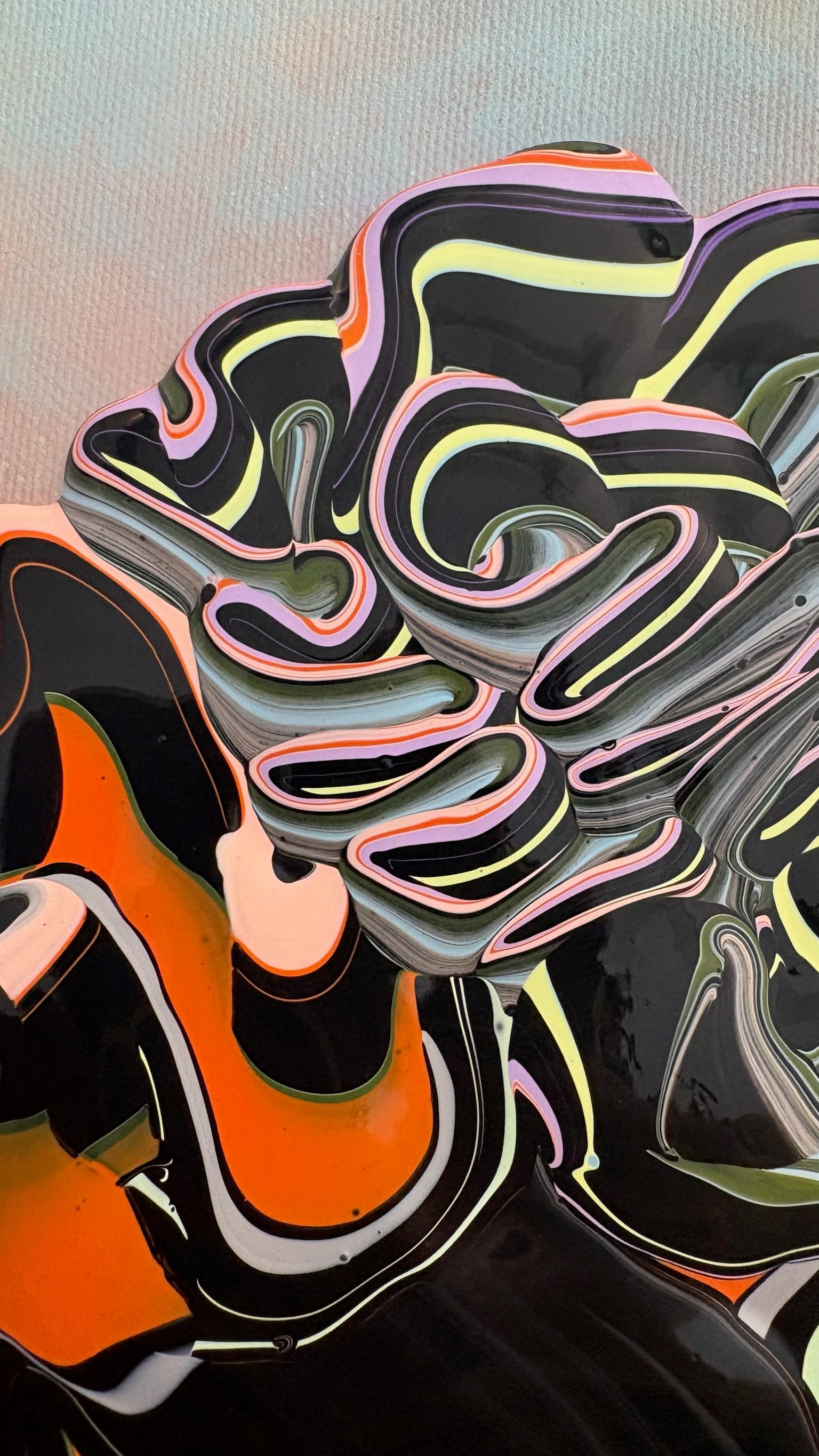 this piece comes from a collaboration with the swedish/israeli artist, alexandra gunnarsson (on instagram @alexochgunnar) and the canadian artist, dermai zan young (on instagram @art_dzy). after a dip at dawn in a local spring, we sat facing each other in silence, eyes closed, taking turns to see what color came to the surface. we committed to being ok with not knowing what would happen on the canvas, and gave ourselves permission to make something terrible. each artist took their turn with no interference from the other. it was a practice of being in the moment, trust, and flowing together.